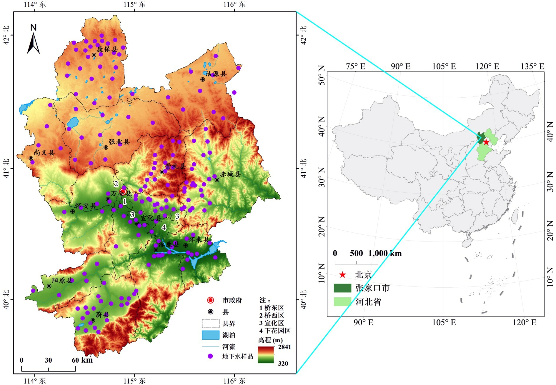Fig.1 Map of the geographical location and groundwater samples of Zhangjiakou city