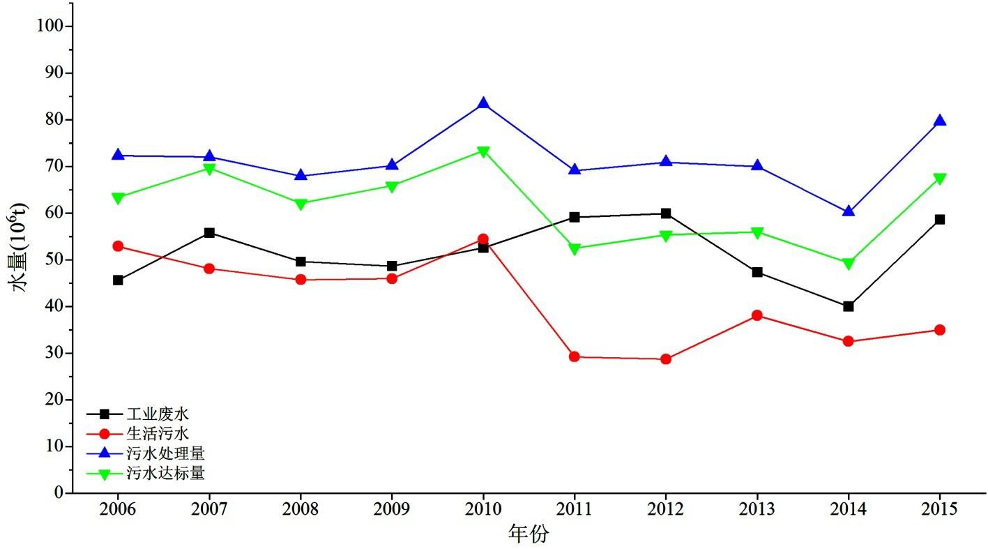图8 张家口工业废水和生活污水排放及处理量统计[43]