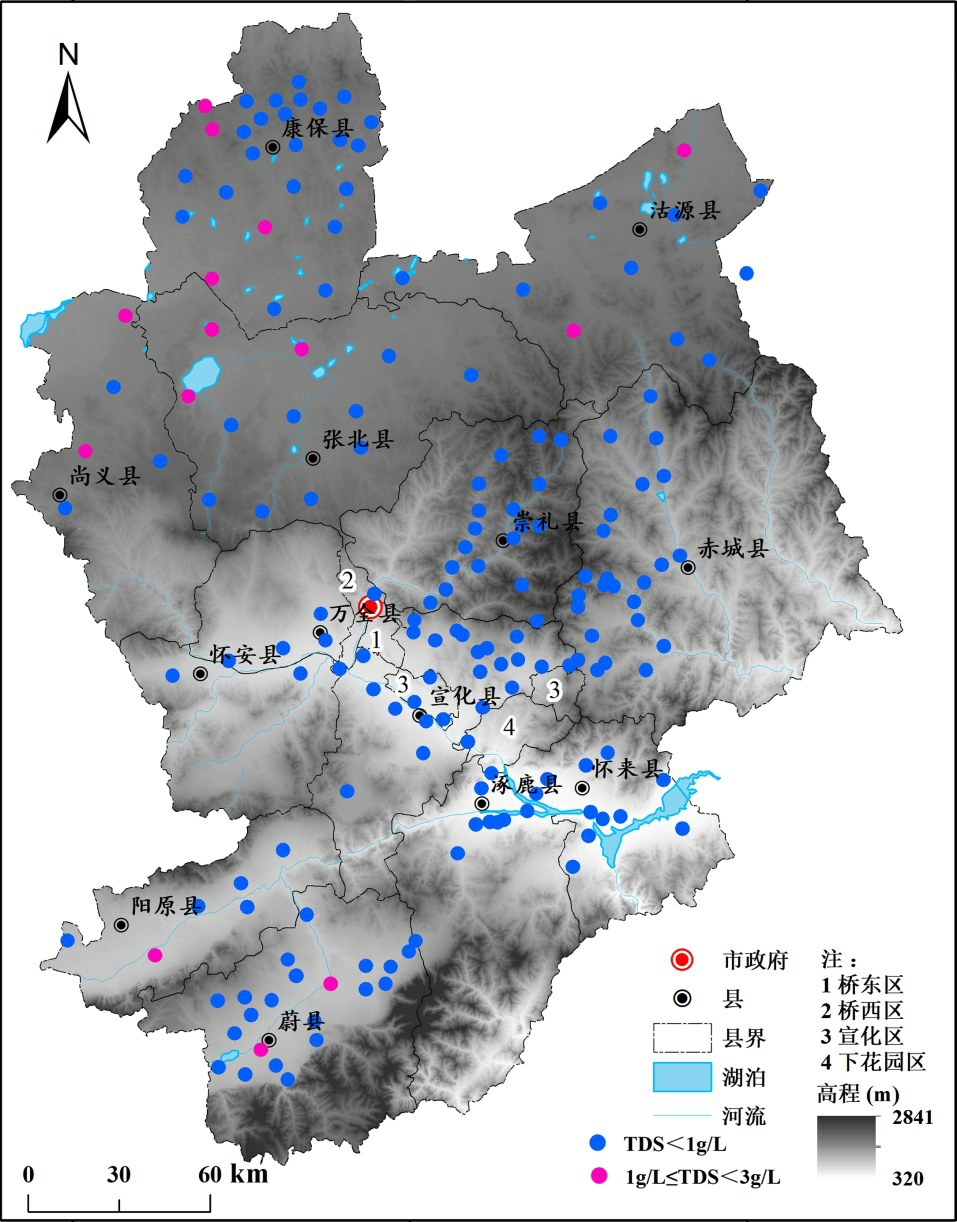 Fig.4 Distribution characteristics of TDS in groundwater in Zhangjiakou area