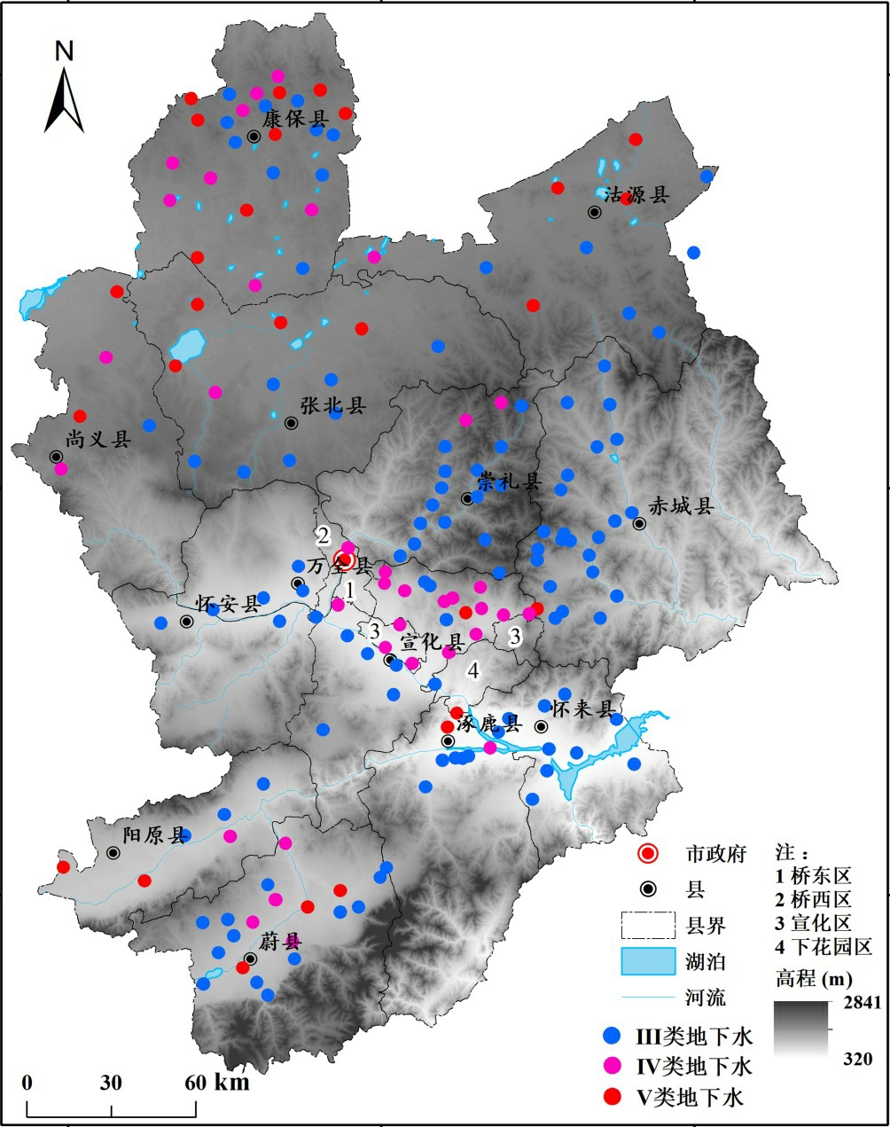 Fig.7 Groundwater quality distribution in Zhangjiakou area