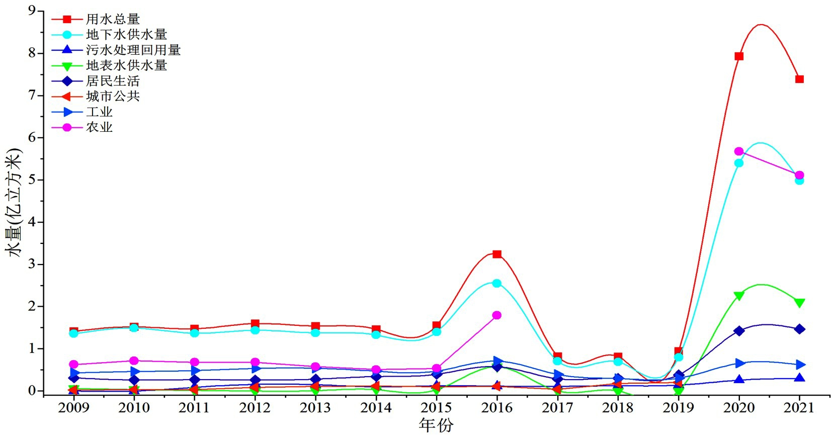 Fig.2 Development and utilization of water resources in Zhangjiakou area from 2009 to 2021