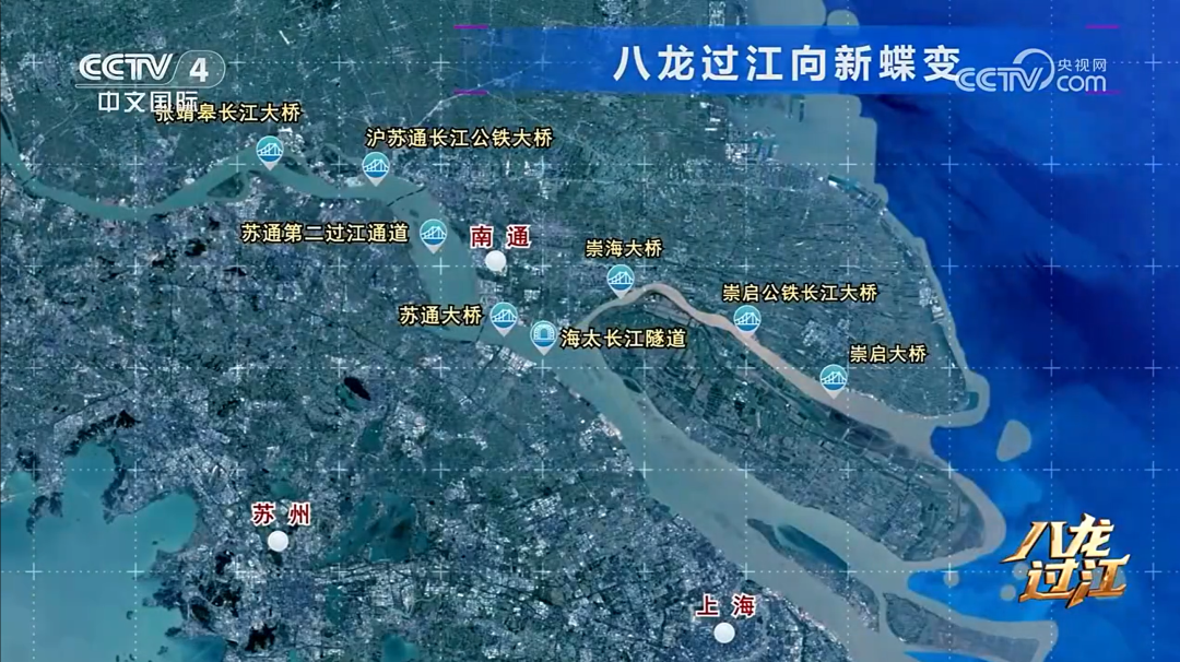 昨晚10点央视中文国际频道《中国新地标》栏目播出《中国新地标·八龙过江-1》聚焦南通已建成、正在建设以及规划中的八条过江通道