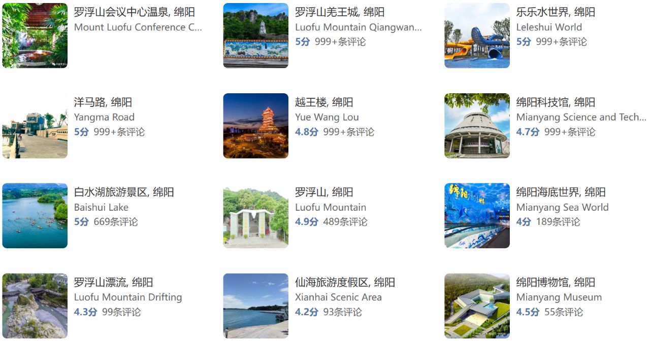 ① 高端度假:绵阳首开喜来登酒店、九皇山西羌酒店。