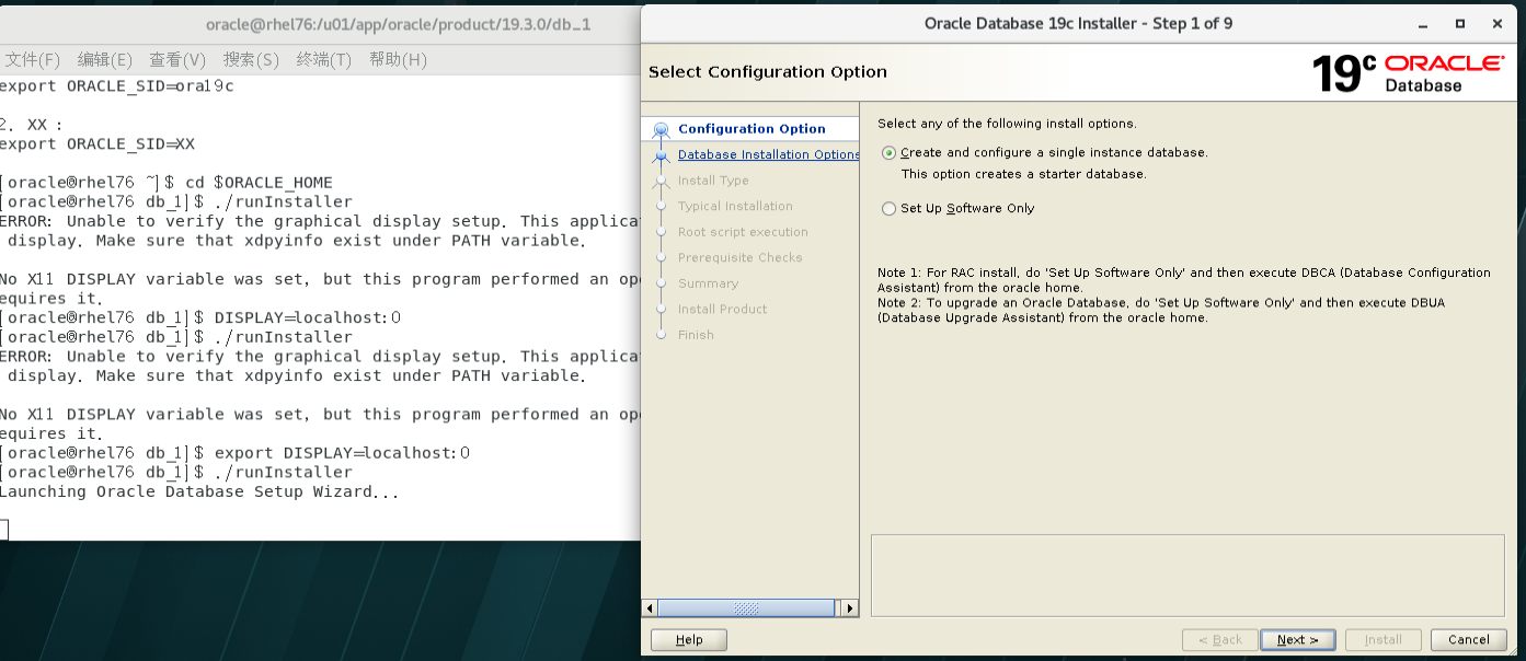 [oracle@rhel76 db_1]$ export DISPLAY=ip:0.0 #IP地址是链接服务器的地址