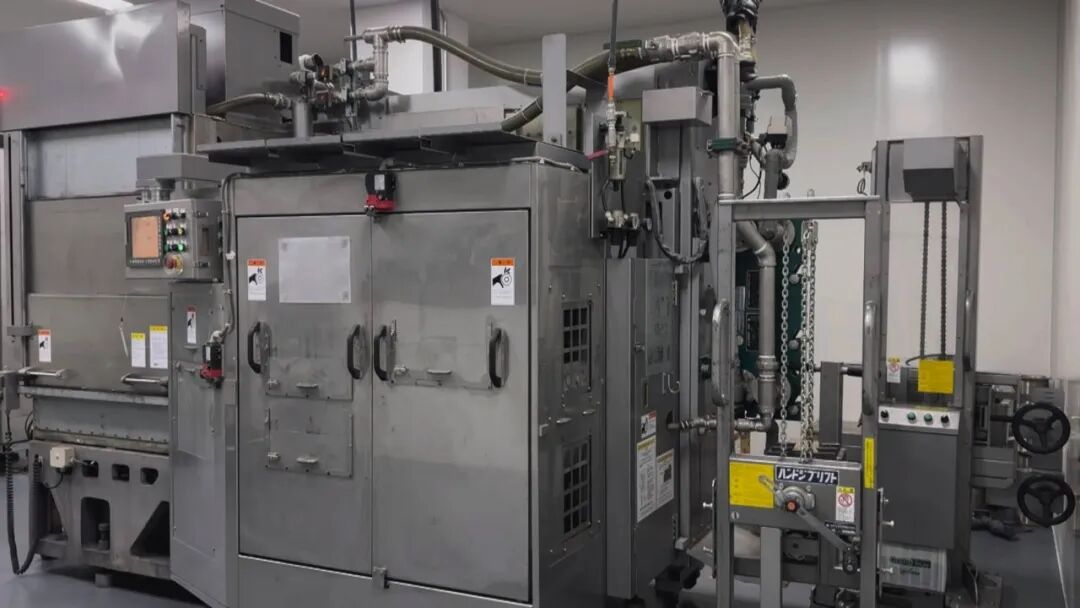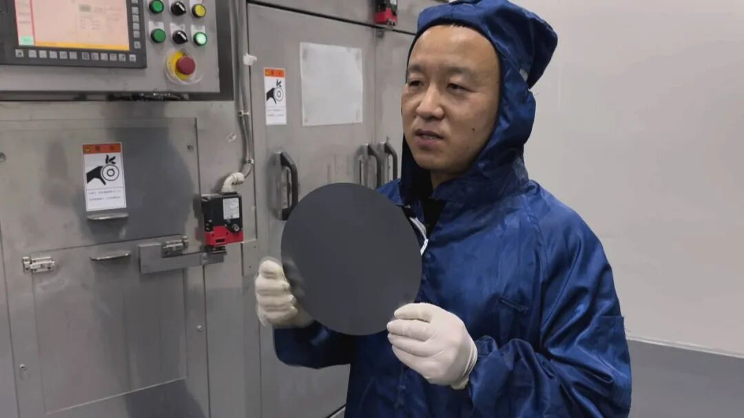江苏基尔彼新材料科技有限公司线切割工艺工程师 杨东升:这个是我们去年引进的日本线切割机,国内总共也就10台左右,通过50微米粗的金刚丝切割单晶硅棒,切成这样的硅片。硅棒的硬度和钻石差不多,所以整个技术要求很高,误差只能在5微米以内,这也是整个晶圆生产过程中难度最大的工艺。