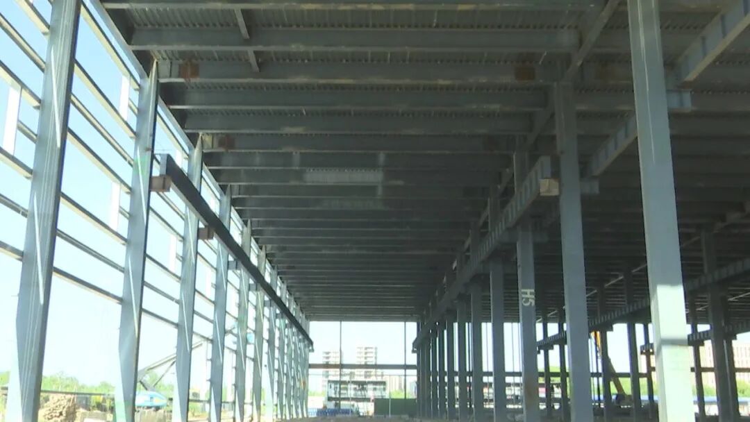 海容水务项目经理 丁成:我们现场有钢结构、钢筋、木工、水电等六个班组同时作业,大概有七八十名工人。为了抢抓工期、赶超进度,我们整个国庆假期都没有休息,钢结构墙梁在国庆期间已经全部完成,接下来就要进行屋面和墙面的盖瓦施工。