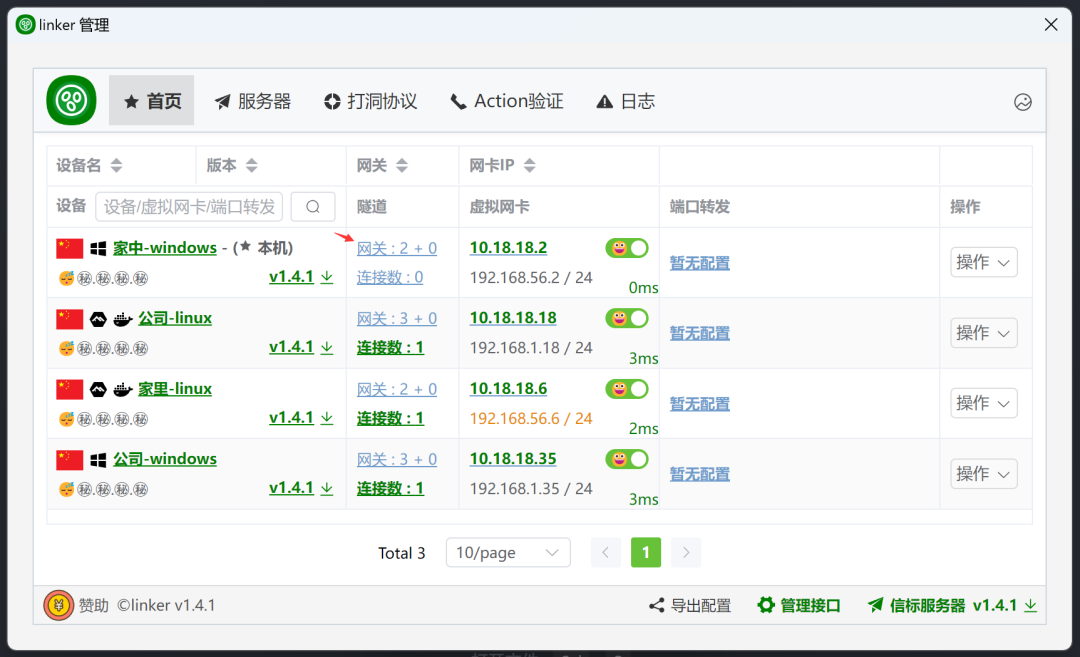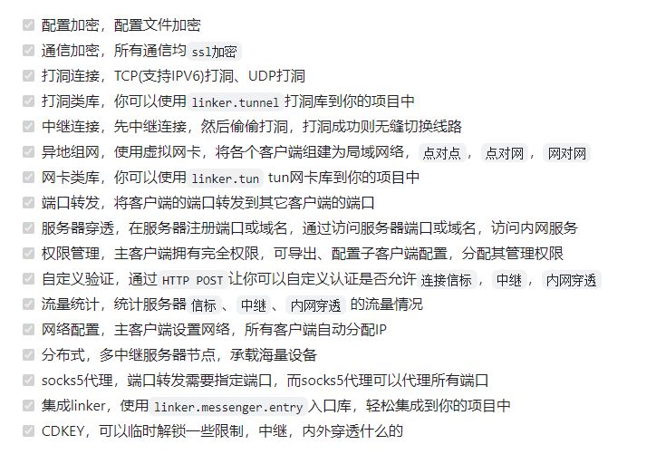 linker是一个基于 .NET8 开源免费(GPL-2.0 license)的异地组网和内网穿透工具,支持TCP(支持IPV6)打洞、UDP打洞,服务器中继,异地组网使用虚拟网卡将各个客户端组建为局域网络、支持点对点、点对网、网对网等。