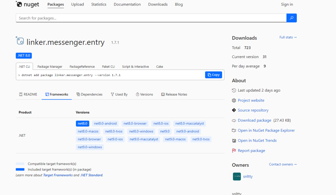 在.NET8+项目中,nuget 安装 linker.messenger.entry: