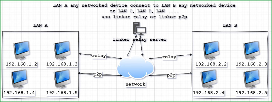 使用P2P或者服务器转发,让你的各个局域网连通起来,使这些局域网中的任何联网设备都能进行通信,它适用于需要跨网络进行设备间通信的场景,如远程办公、智能家居控制、文件共享等: