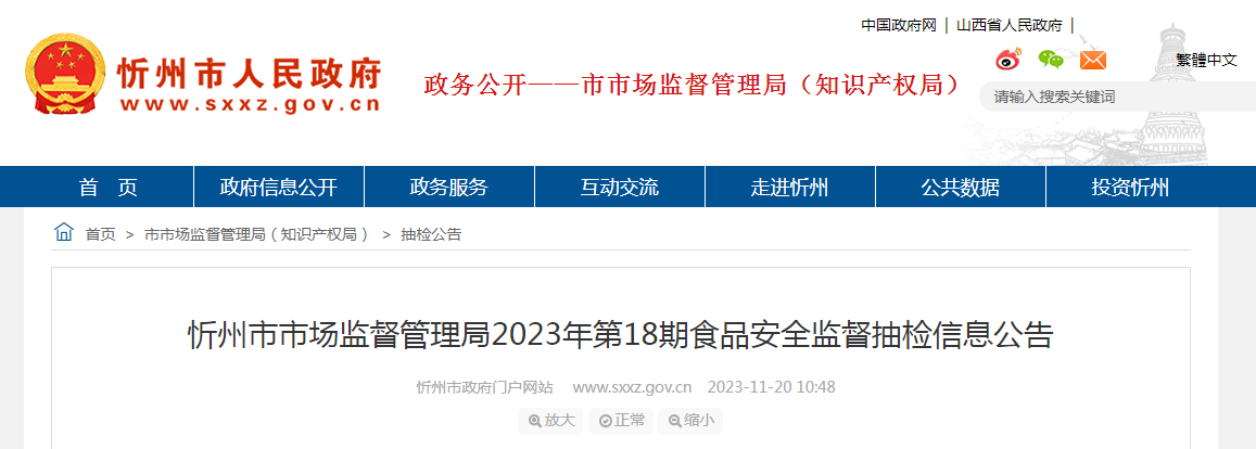 山西省忻州市市场监督管理局发布2023年第18期食品安全监督抽检信息