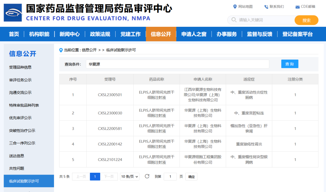 如今,华夏源自主研发的Ⅰ类生物制品“ELPIS人脐带间充质干细胞注射液”已获得国家药监局药品审评中心(CDE)五项适应症IND受理,分别是:中、重度慢性斑块型银屑病,重度狼疮性肾炎,慢加急性(亚急性)肝衰竭,中、重度宫腔粘连以及中,重度活动性炎症性肠病。