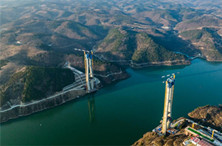 12月24日拍摄的汉江特大桥两岸主塔施工现场(无人机照片)。汉江特大桥位于湖北省十堰市,是一座梁桁组合结构斜拉桥,全长917.45米,P3、P4两座主塔高度均为186.5米,共设置80对斜拉索,主跨420米。