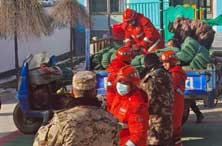 12月23日,在积石山县刘集乡肖家村临时安置点,武警甘肃总队机动支队官兵为受灾群众铲取暖用煤。积石山6.2级地震发生后,人民子弟兵奋战在抗震救灾第一线,把温暖和关怀送到灾区群众的心坎上。