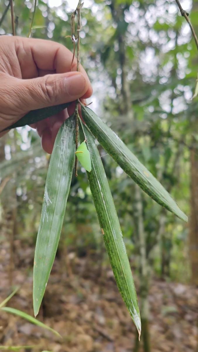 资料图 蝴蝶谷中“翡翠色”的蝶蛹。2022年5月摄于金平。李艾蓉 摄