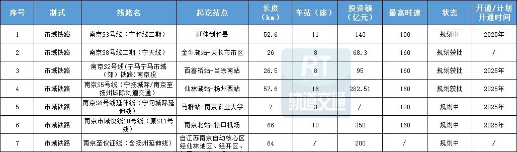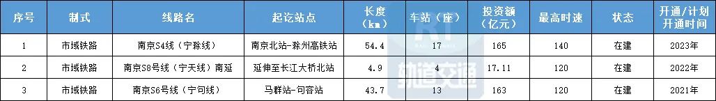 其中,南京市域快线18号线、南京S2号线(宁马市域(郊)铁路)南京段、南京S5号线(宁扬城际)、南京S6号线延伸线(宁句城际延伸线)均已纳入长三角地区多层次轨道交通“十四五”规划建设项目表。