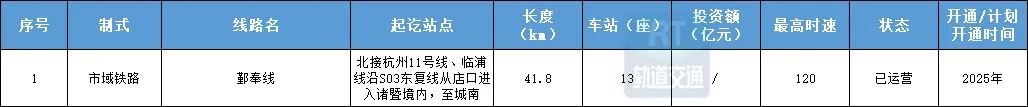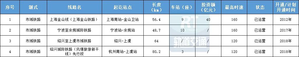表16:浙江省其他城市市域(郊)铁路运营线路表