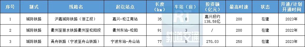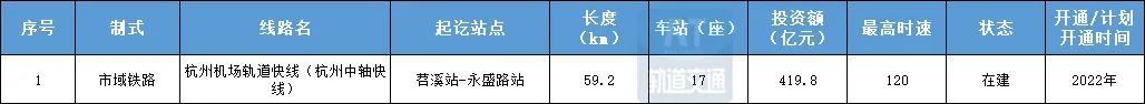 表17:浙江省其他城市市域(郊)铁路在建线路表