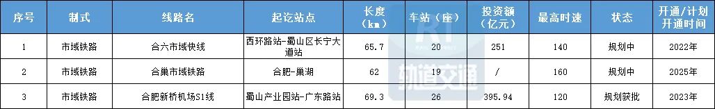 合肥新桥机场至六安城际铁路,自新桥机场至六安,全长约100千米,预计投资188亿元,已被纳入长三角地区多层次轨道交通“十四五”规划建设项目表。