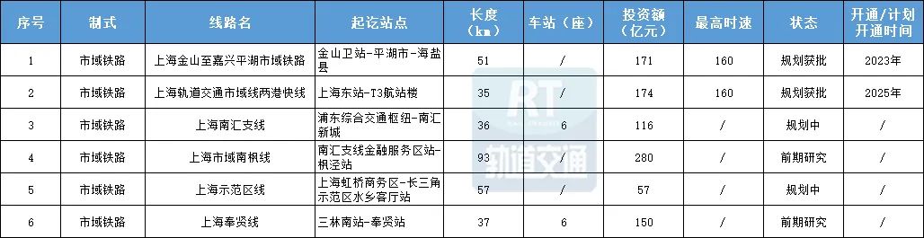 截至2021年7月,上海市域(郊)铁路共计10条线路,其中在建线路4条、规划线路6条。总长度超436.6公里,预计投入超2213.15亿元。