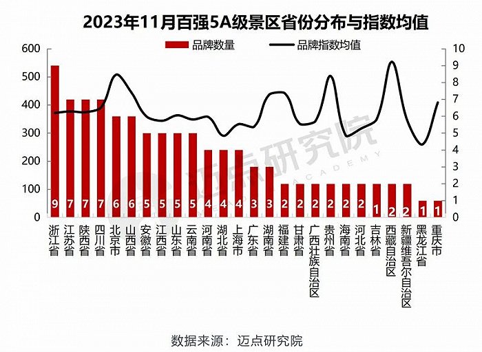从省份品牌指数来看,榜单前10分别为:西藏自治区、北京市、贵州省、山西省、福建省、湖南省、重庆市、四川省、江苏省、陕西省。