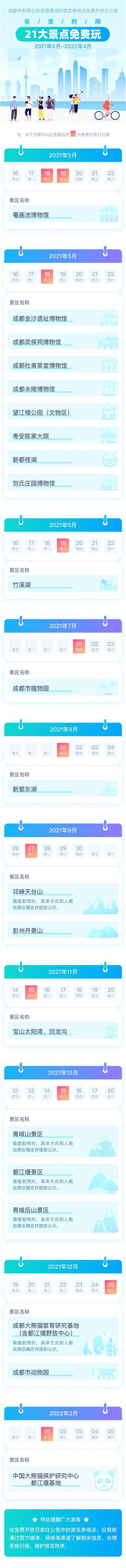 由于各个景点免费开放的日期不同