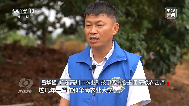广东高州市农业科技事务中心主任 高级农艺师 吕华强:农业推广中心这几年一直在和华南农业大学,还有农科院科研所,了解其他荔枝新品种,引进过来对高州地区的荔枝品种进行更新改良。