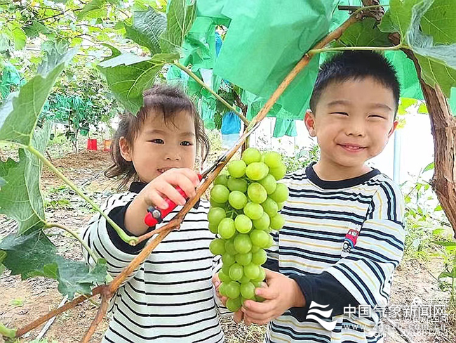 图为小朋友在采摘葡萄 马芳 摄影