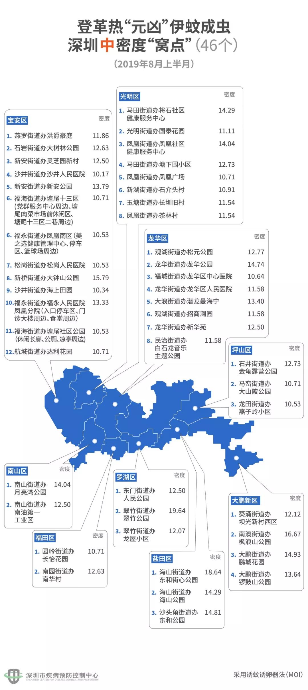 8月21日,深圳市疾控中心发布了一份最新的“蚊子窝”地图: