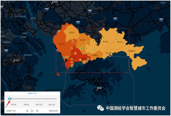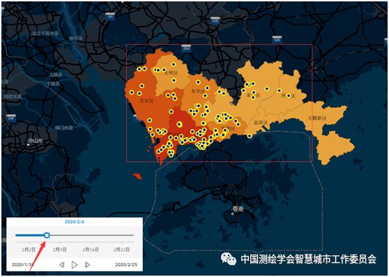 深圳市新冠肺炎病例发展时序图,展示随时间变化疫情在小区中的发展情况;