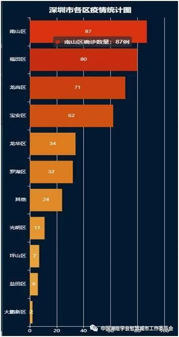 深圳市新冠肺炎病例统计,从空间分布上、直观数字上、图表统计上分别展示深圳各区最新的统计数据;
