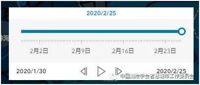 并且在勾选“发病小区”后,左下方会出现时间播放条,该时间播放条可以人工拖动或者点击播放按钮自动播放,随着时间进度变化,小区点会动态显示,展示出小区疫情的空间时序变化。