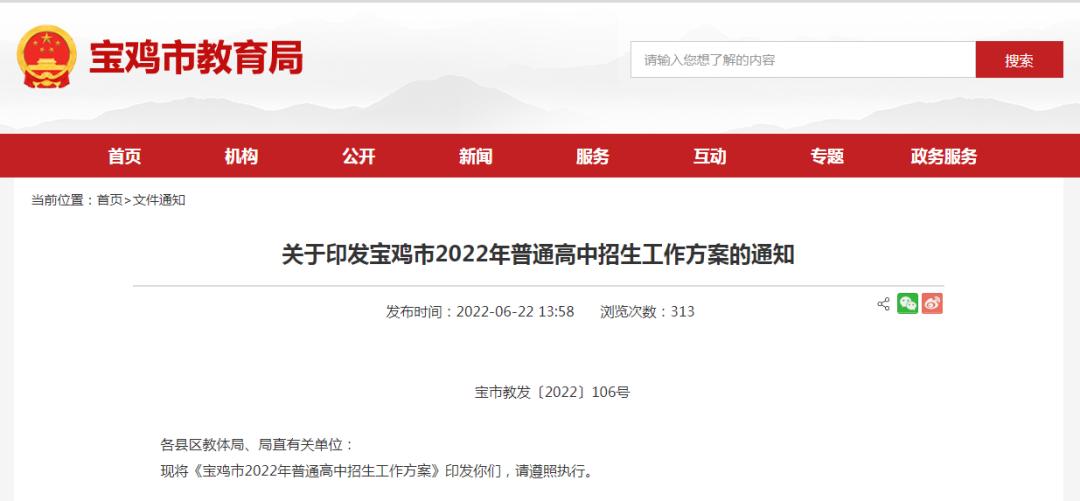 原标题:《宝鸡2022年高中招生办法发布》