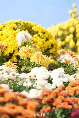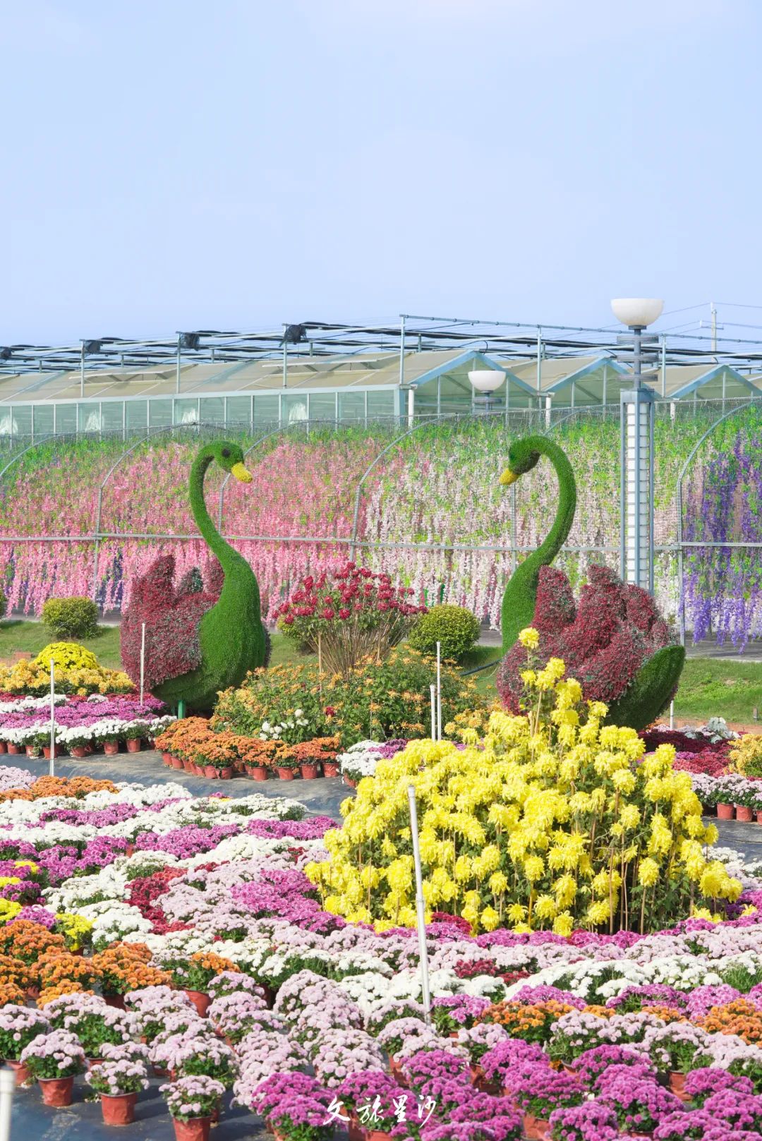 安沙镇“秋之韵”花艺节采用分散布景模式,占地面积5万平方米,约有200多个菊花品种惊艳亮相,10万余盆花卉遍布园中。