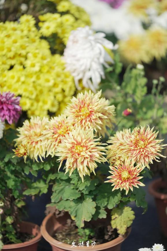 菊花的美在这里有上百种姿态。花境造型各异,插花别具一格,可远观,也耐得住细细赏味。
