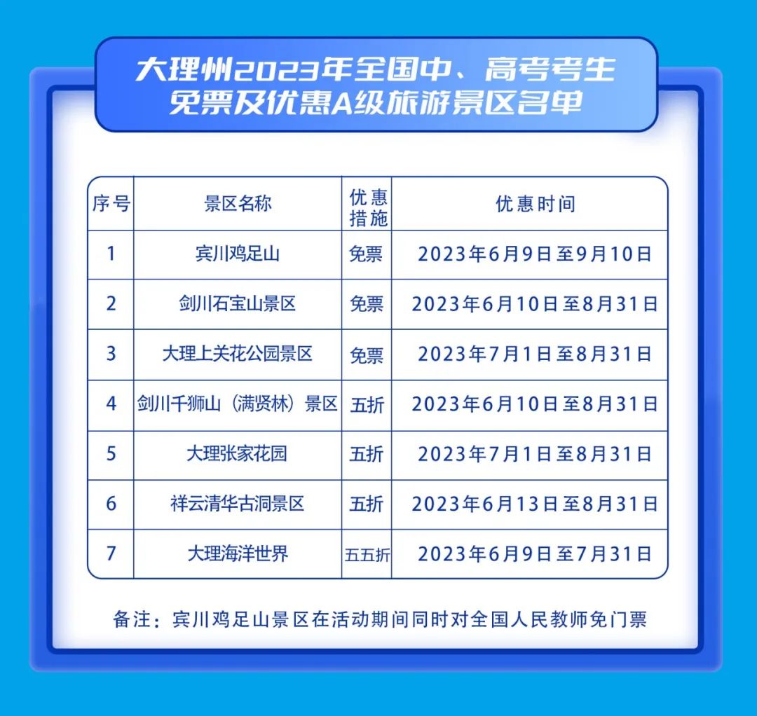 6月9日至8月31日,白云山、金顶山、老乐山、南海禅寺等景区对全国2023年中、高考考生免门票。