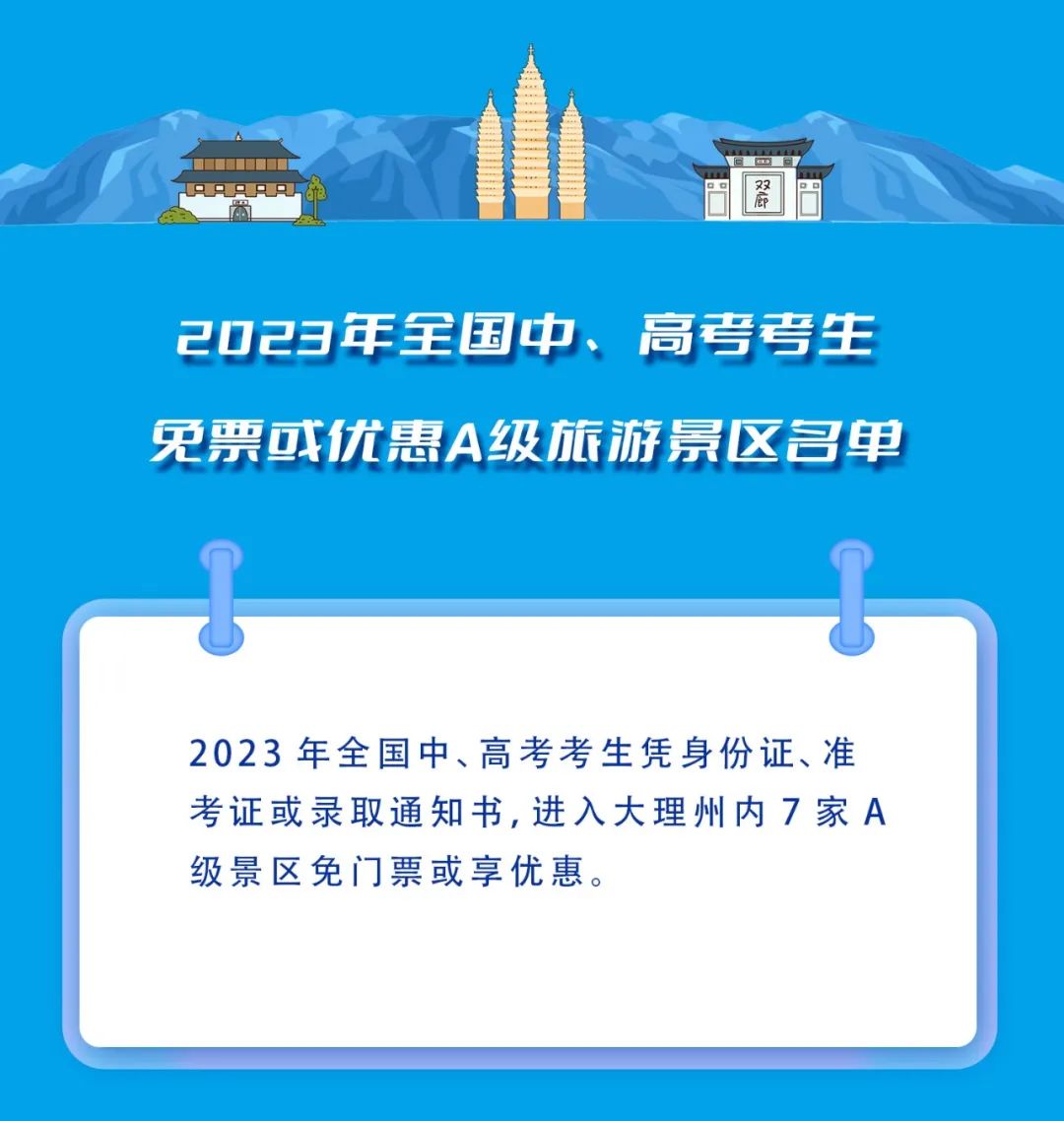 殷墟、太行大峡谷、羑里城、二帝陵、双峰山雪花洞、天宁寺、马氏庄园、昆玉山、万泉湖等景区对2023年中高考考生免门票。