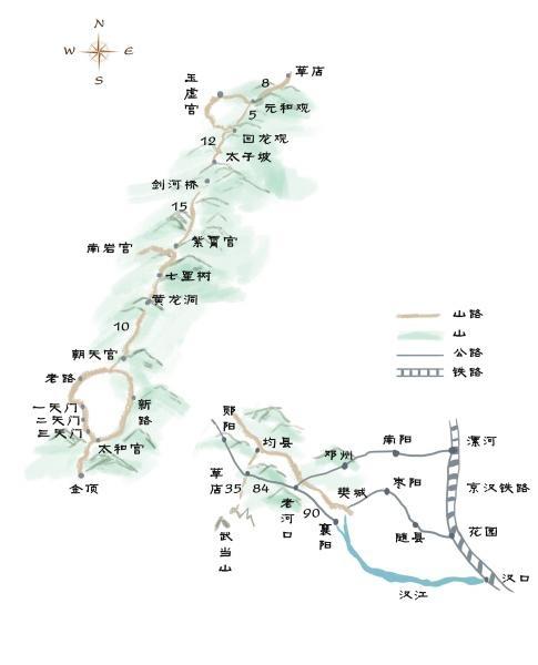 草店离武当山天柱峰顶还有 75 里,舟车劳顿的旅人多在此休息,第二天雇肩舆(当地轿子)或步行上山。