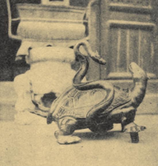 ▲遇真宫龟蛇二将,宽高各二尺许,重约 200 斤,现不知道在何处。