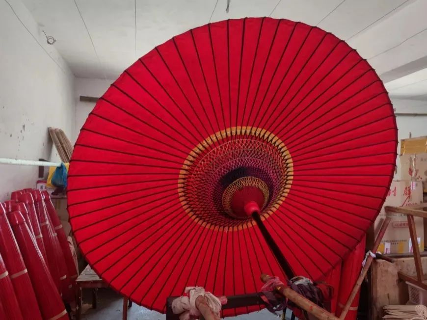 前不久,上海一位知名设计师在抖音上看到“闻叔的伞”,准备将油纸伞用来做大型布展,就联系闻士善(抖音号:闻叔的伞),订购了200多把。设计师对造型和色彩要求很高,闻叔这些天一直在研究、设计。