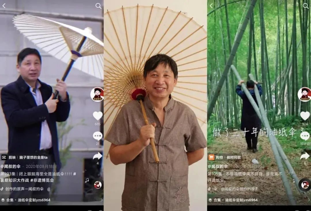 闻士善是富阳油纸伞的省级非遗传承人,2019年4月,抖音推出对非遗传承人的扶植计划,闻士善的抖音粉丝涨到了80万。2020年疫情突袭,来自日本的订单锐减7成,而来自抖音的订单超过300万元,后者帮闻士善撑过那段至暗时刻。