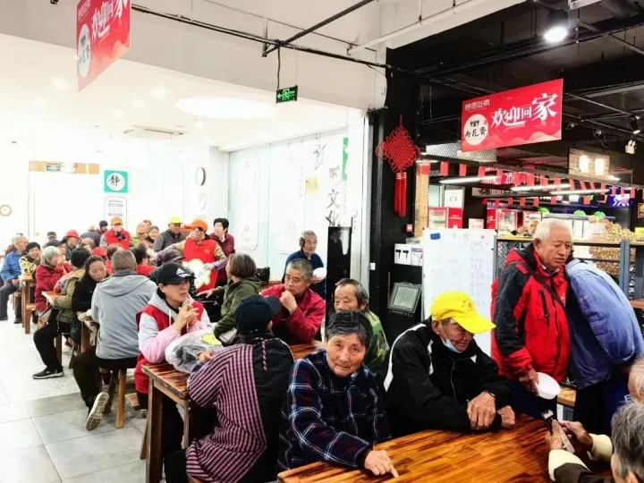 就餐者不仅有附近的社区居民,还有闻讯而来的市区居民。79岁的顾士军老人家住虹桥街道,经常转乘两路公交车赶到这里就餐。“大家就像一家人,我们喜欢这里的氛围。”