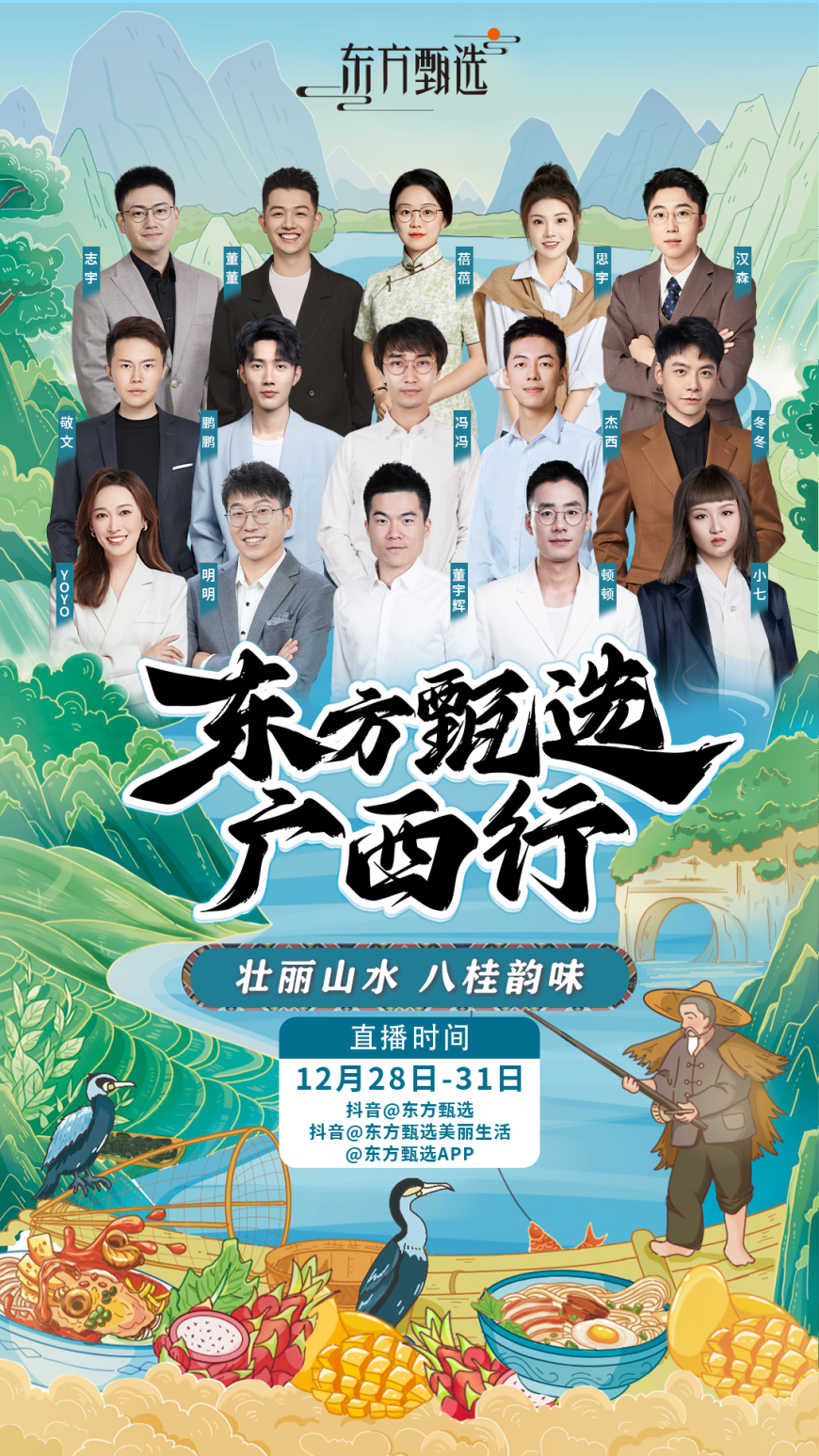 ★12月28日—29日,东方甄选在广西开播,举办“东方甄选品牌日”活动预热。