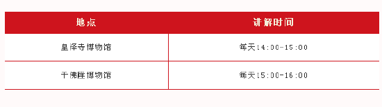 活动内容:提供义务讲解服务,在每日两场义务讲解(定时免费讲解时间:9:30—10:30,15:30—16:30)基础上,当日同时段再增加两场免费讲解,同时延时开放至17:30。