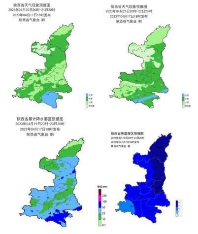 受高原槽和偏南暖湿气流共同影响,4月19日夜间至23日陕西省有一次大范围降水、降温、吹风天气过程,陕北部分、秦巴山区部分地方有雨夹雪或小到中雪。