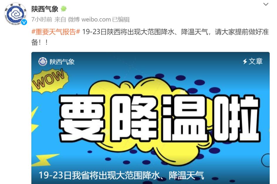 原标题:《雨雪来袭!陕西将现大范围降温、降水天气→》