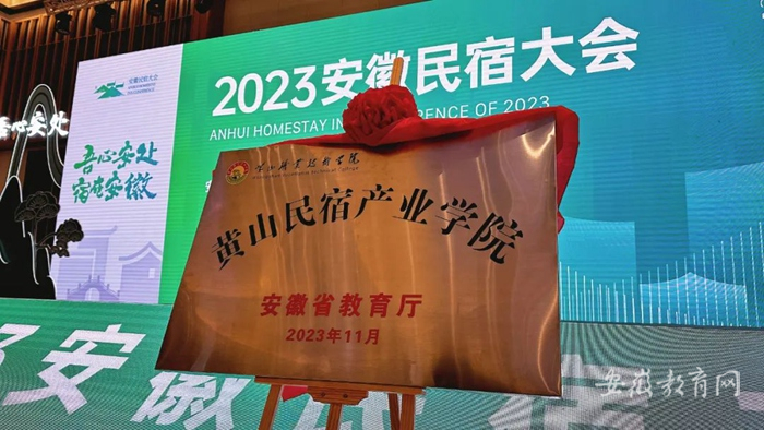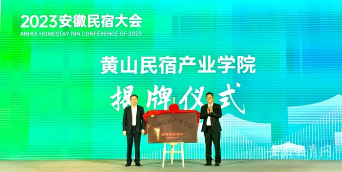 11月11日上午,2023安徽省民宿大会在黟县拉开帷幕。会上,安徽省教育厅与黄山市人民政府共同为黄山民宿产业学院揭牌。黄山民宿产业学院揭牌成立,标志着黄山民宿产业高质量发展又有了新的人才培养输出平台、社会服务平台和旅游产业链资源融通平台。