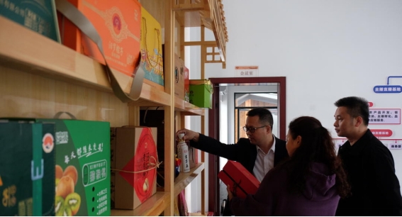 上午九点半,位于端午人家的屈子祠镇客货邮运营中心,“农人知恩”账号正在直播。主播“余二帝”正在推介屈子祠本地生产的“三石缘”传统手工糕点,满满的家乡味、乡土味吸引了不少观众下单。