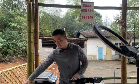 倚着碧绿的菜园与小山,竹木搭建的直播台别有田园风味,据荀明介绍,以前他们在家里直播,地方小、出货不易,一个多月前,他们在当地政府的帮助下,利用闲置村小设置了新场地。对于未来,荀明也有了新的想法和规划,“不光是腊肉,以后也想带一些别的家乡土特产。”