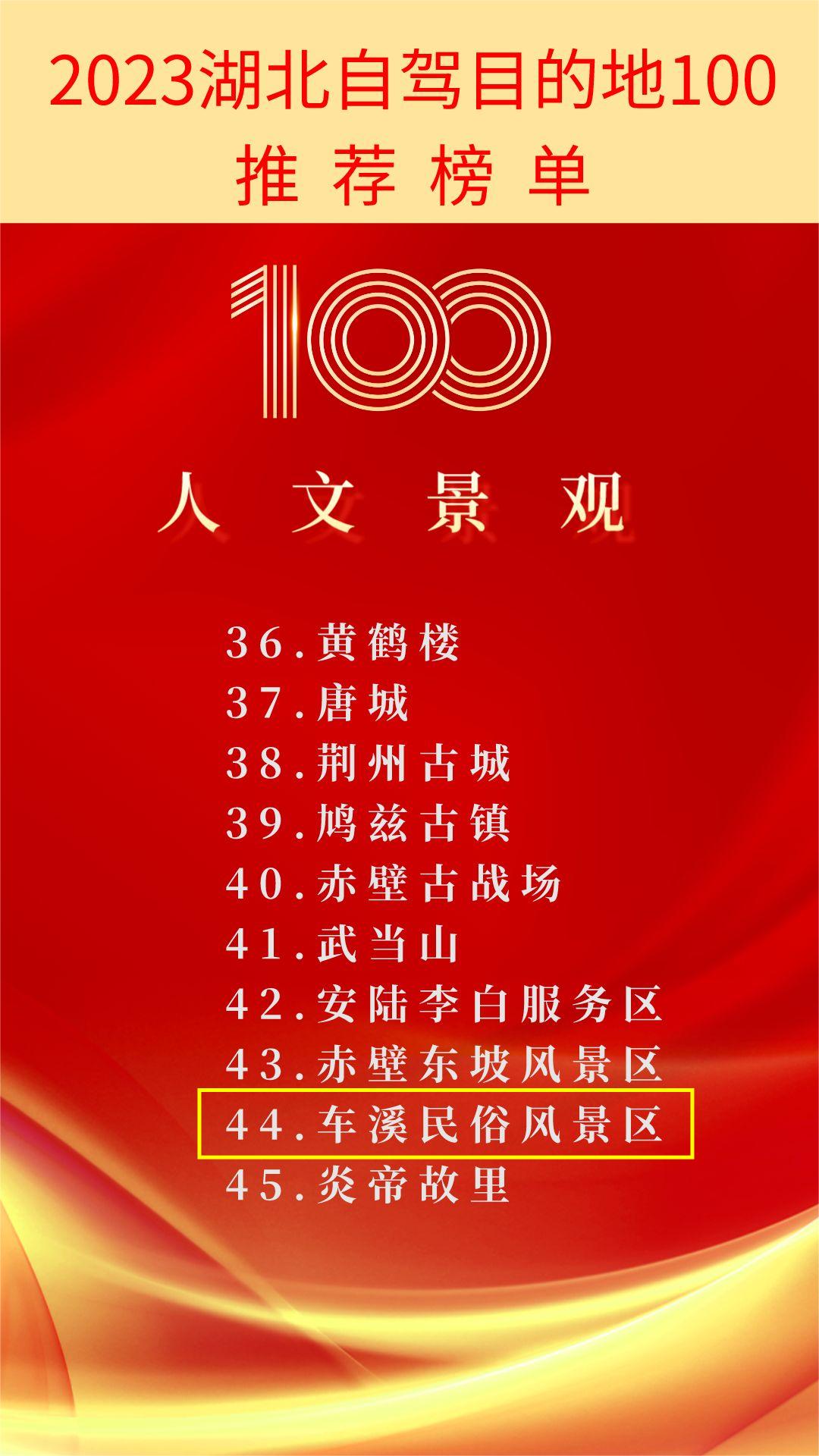 2023湖北自驾目的地100推荐榜单