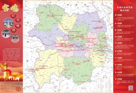 《宝鸡红色地图》包括地图、宝鸡重点红色资源简介、宝鸡红色研学游精品路线三部分内容。